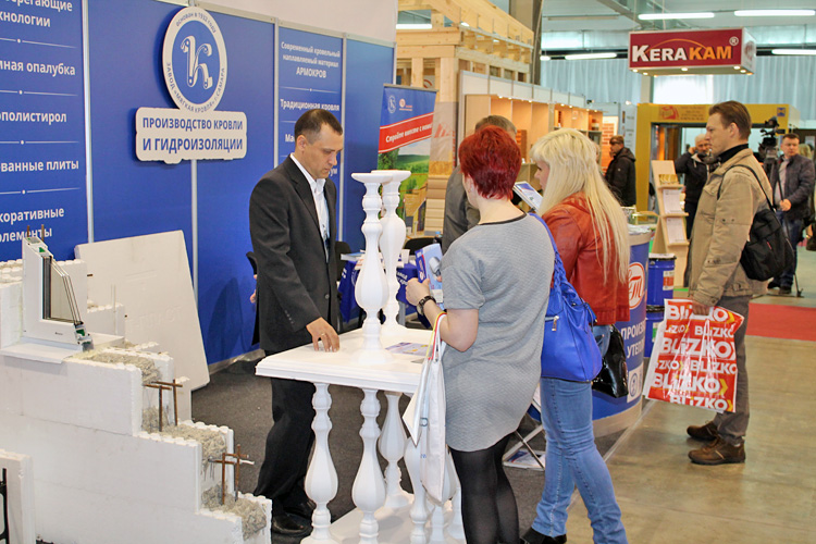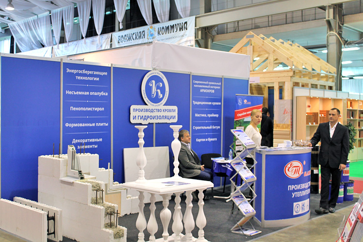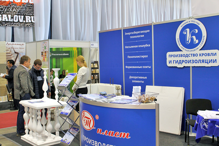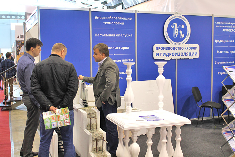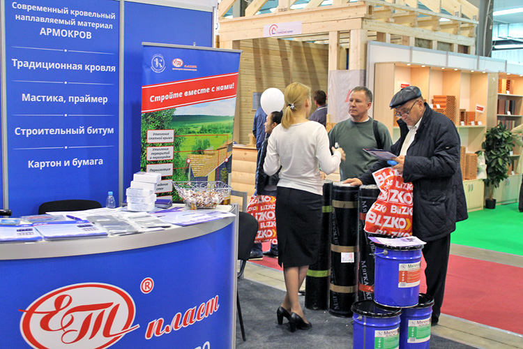 Завод «Мягкая кровля» встречал на своем стенде посетителей образцами не только гидроизоляционных и кровельных материалов, но и энергосберегающей технологией строительства домов.