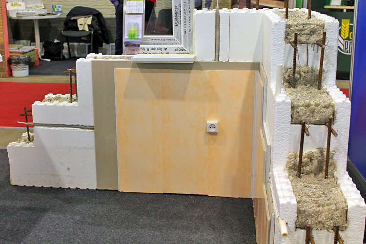 Предприятие выпускает блоки несъемной опалубки из пенополистирола, предназначенные для возведения стен. Они устанавливаются в шахматном порядке на фундамент, затем армируются и заливаются бетоном, образуя жесткую и мощную железобетонную конструкцию. Стена, выполненная по этой технологии, не требует дополнительного утепления. Внутренние перегородки можно изготовить из любых традиционных материалов и конструкций. Перекрытиями могут быть многопустотные, монолитные плиты или классические деревянные конструкции. Для наружной отделки стен подходит система мокрого типа, сайдинг или облицовочный кирпич.  Внутреннюю отделку можно осуществить при помощи гипсокартонных плит. Принимая во внимание тот факт, что в последнее время цены на электроэнергию и топливо постоянно растут, вложения в энергосберегающие технологии становятся необходимыми. Стоимость блоков за 1 кв.м составляет 1100 руб.